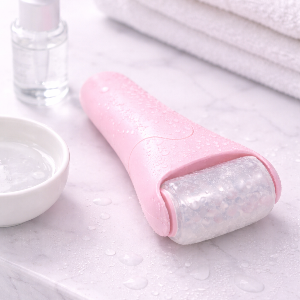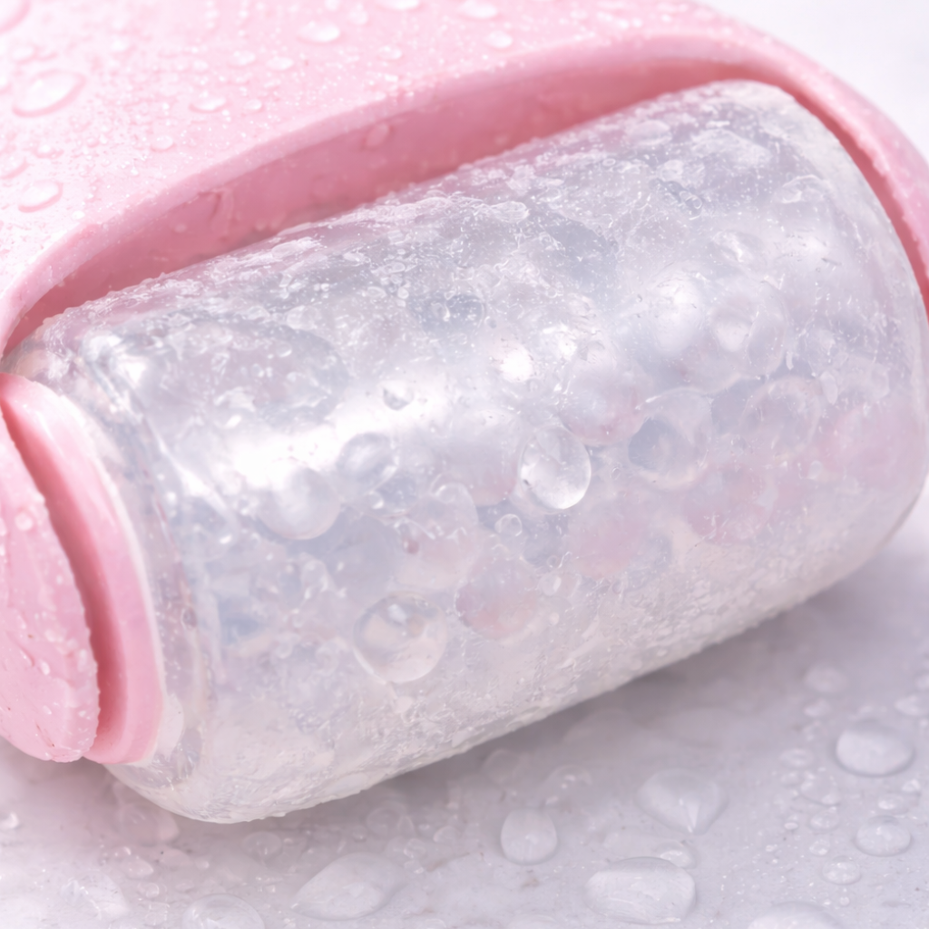 Zamiast improwizować z kostkami lodu, sięgasz po rozwiązanie stworzone specjalnie do twarzy — wygodne, higieniczne i dużo przyjemniejsze w codziennym użyciu ✨