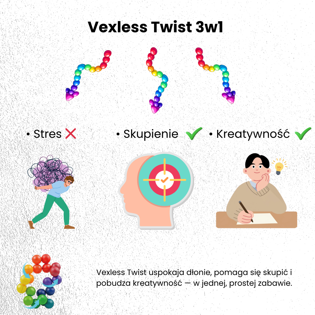Vexless Twist 3w1 zajmuje ręce na dłużej: antystres, fokus i kreatywność w jednej prostej zabawie.