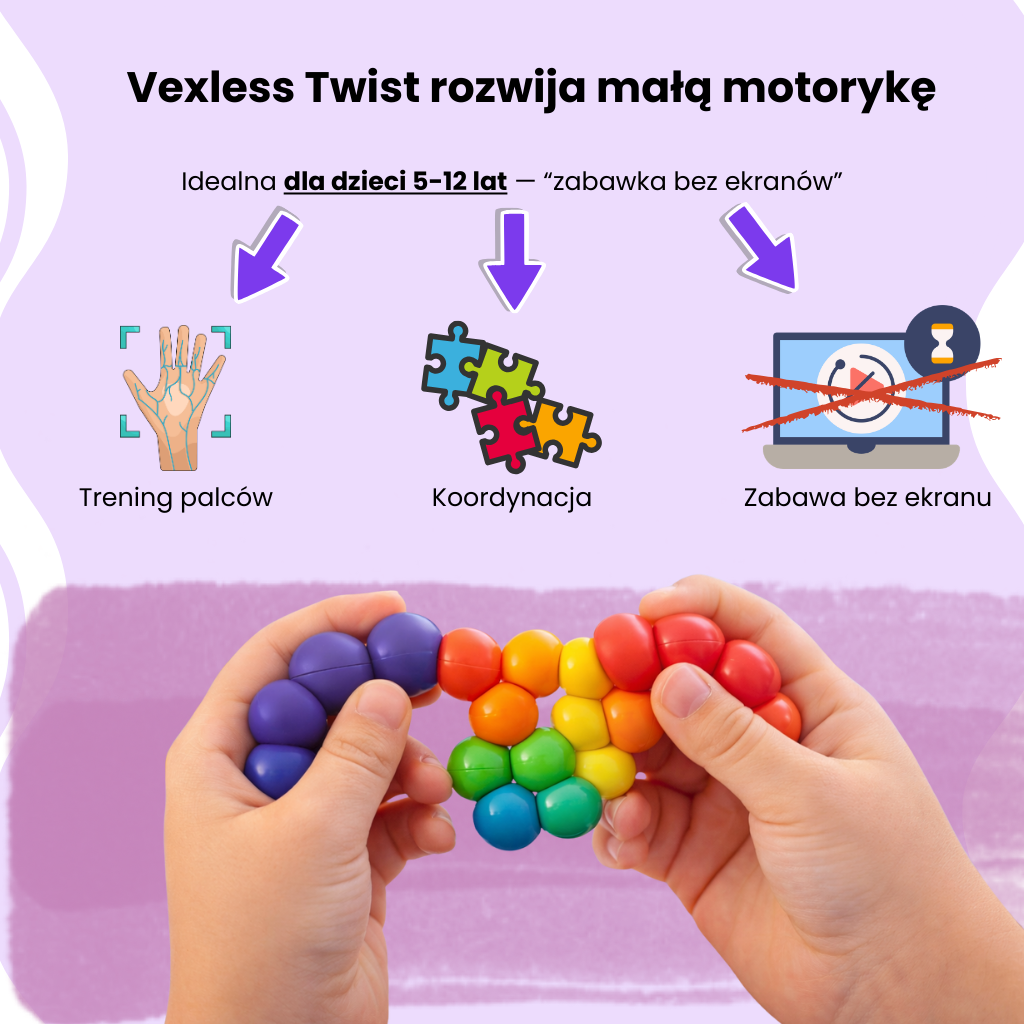 Vexless Twist wspiera dziecko w nauce, bo angażuje dłonie i pomaga “uspokoić” nadmiar bodźców.