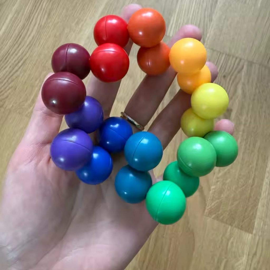 Vexless Twist to kompaktowa zabawka sensoryczna 3D z 20 kulkami (Ø 2 cm), którą możesz skręcać i układać w formy 2D i 3D.