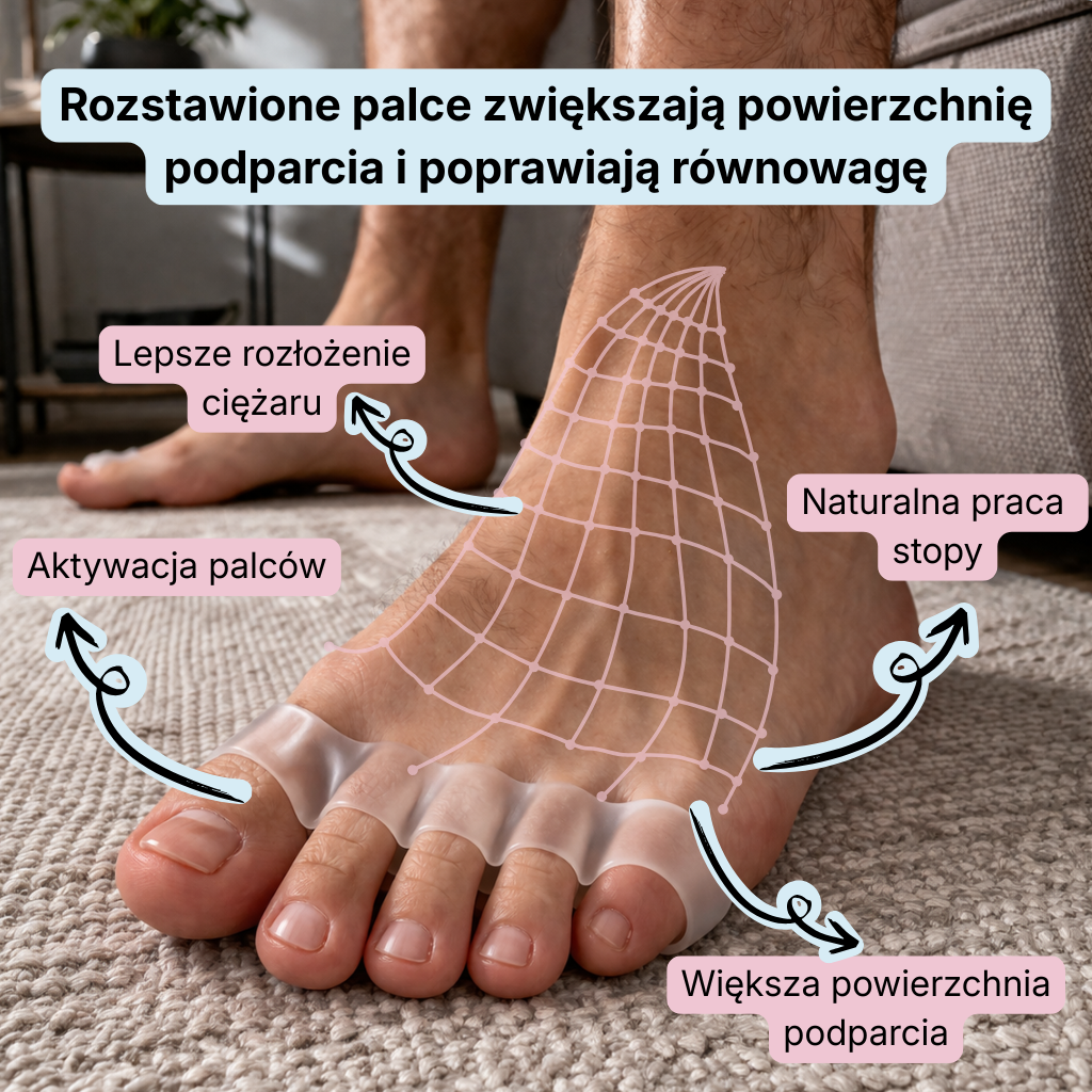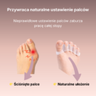 🦶 Pomaga przywrócić naturalne ułożenie palców